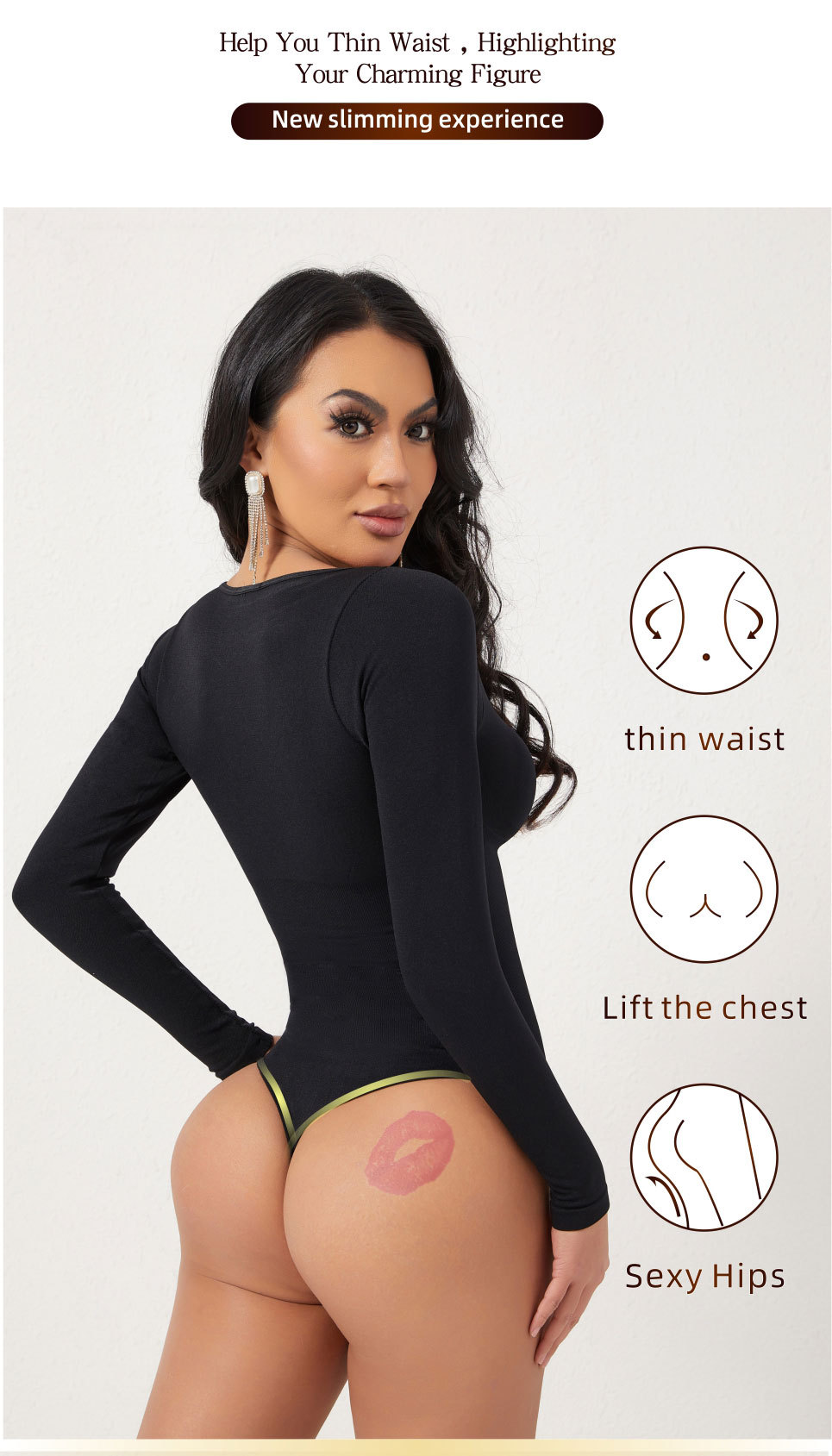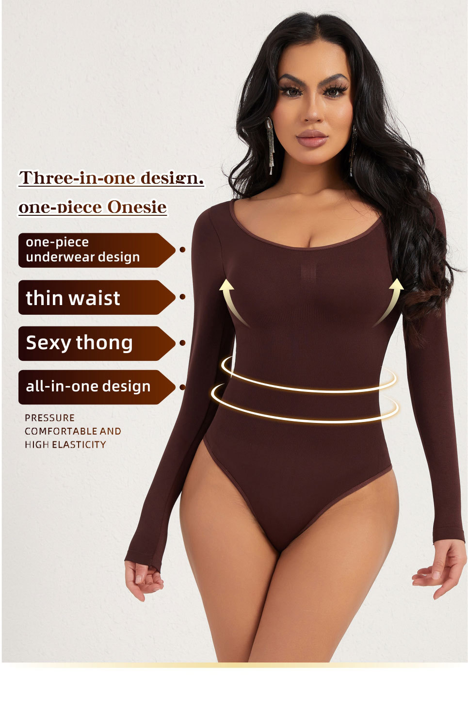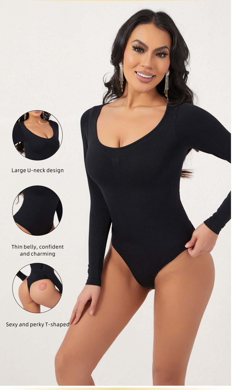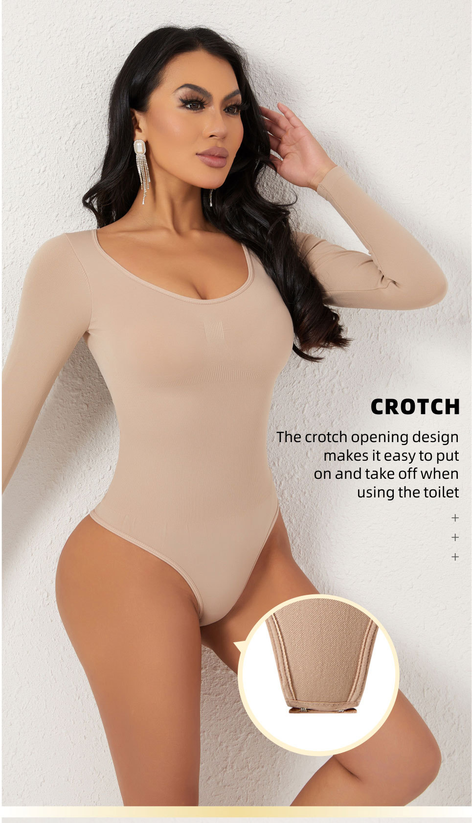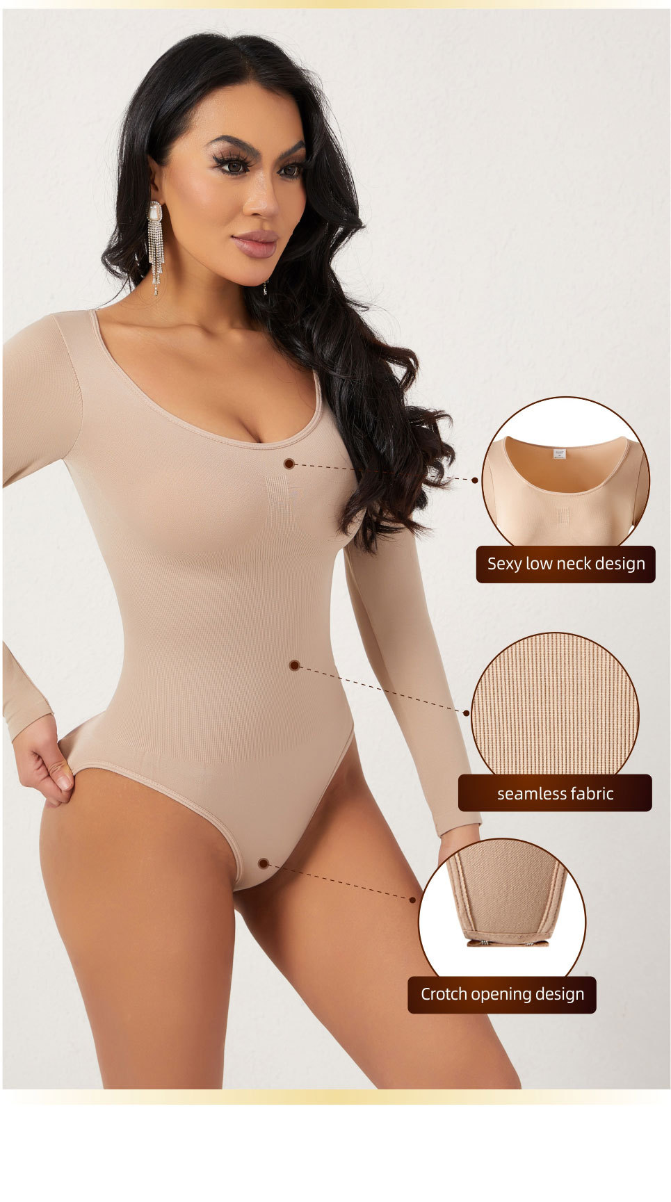 Long-sleeve shapewear bodysuit for women