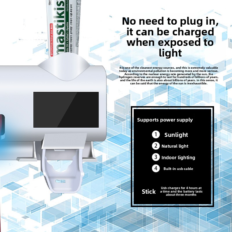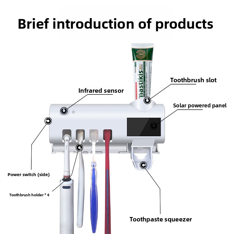 Multifunctional Design: Integrates toothbrush storage, UV disinfection, and toothpaste squeezing in one compact unit.